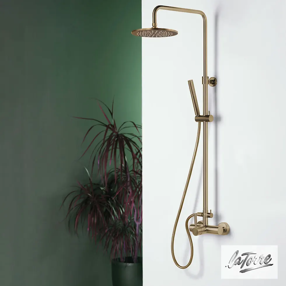 Μπαταρία ντουζιέρας θερμομικτική TECH 2 εξόδων με κολώνα Φ20/25 mm ρυθμιζόμενου ύψους 83-144 cm, ανακλινόμενη κεφαλή Φ22,5 cm & τηλέφωνο anticalcare με άθραυστο σπιράλ 1.5m, LA TORRE Ιταλίας