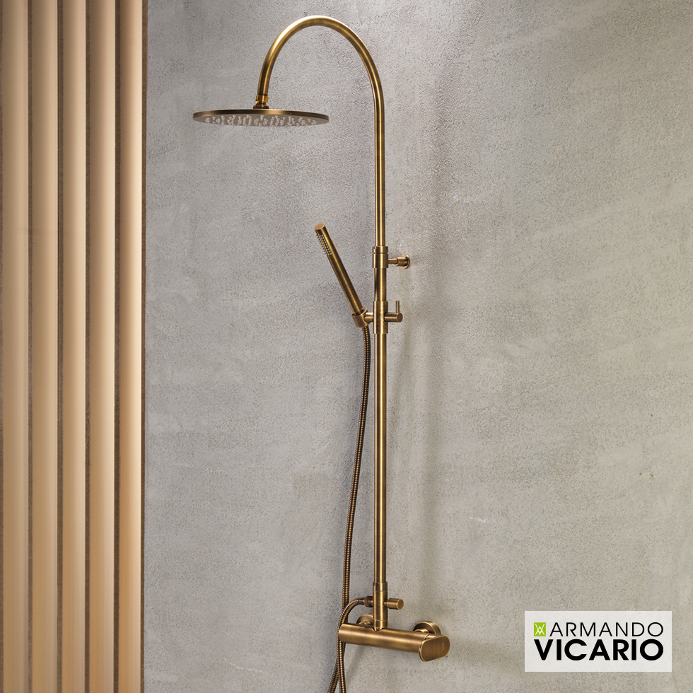Μπαταρία ντουζιέρας θερμομικτική SLIM 2 εξόδων με κολώνα Φ20/24mm ρυθμιζόμενου ύψους 94-122 cm, ανακλινόμενη κεφαλή Φ25 cm & τηλέφωνο Anticalcare με άθραυστο σπιράλ 1.5m, VICARIO Ιταλίας